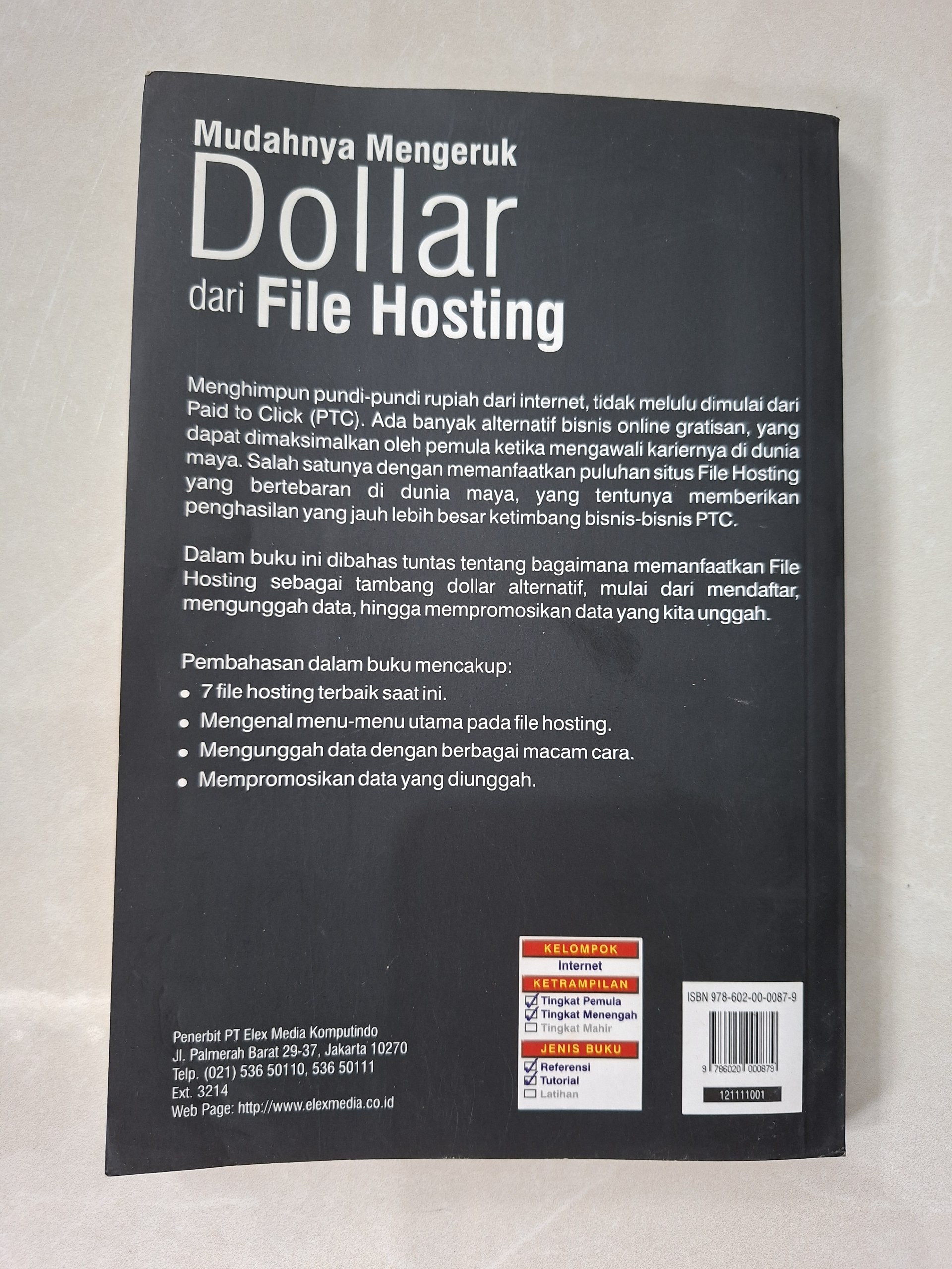 Buku Mudahnya Mengeruk Dolar dari File Hosting kondisi bekas dan masih layak baca. Membahas cara mendapatkan penghasilan dari internet melalui layanan file hosting (konsep dan strategi era lama).